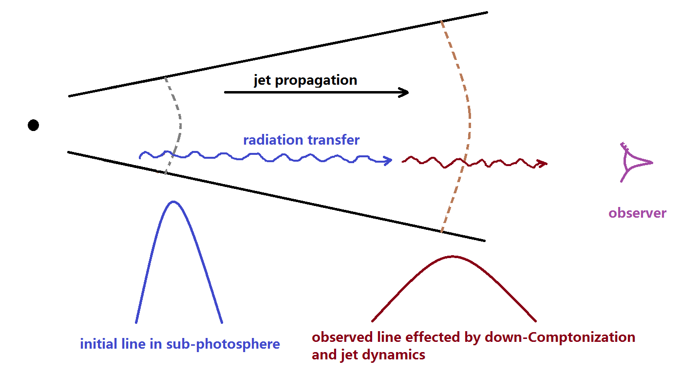 Figure 1the cartoon for the radiation transfer of the high energy emission line. Image by LIU.