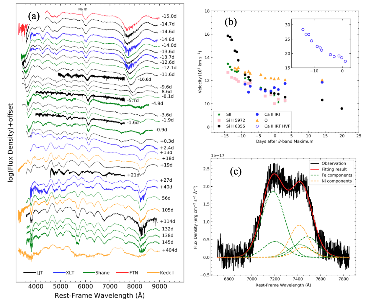 Recently, Dr. LI Liping and Prof. ZHANG Jujia of the Southern Astronomical Observatory of Yunnan Observatories, along with their collaborators, conducted observational studies on a high-velocity Type Ia supernova (SN Ia), SN 2024gy, using the Lijiang 2.4-meter telescope. Their findings, published in The Astrophysical Journal, provide new observational evidence for the "delayed-detonation" model of SNe Ia.