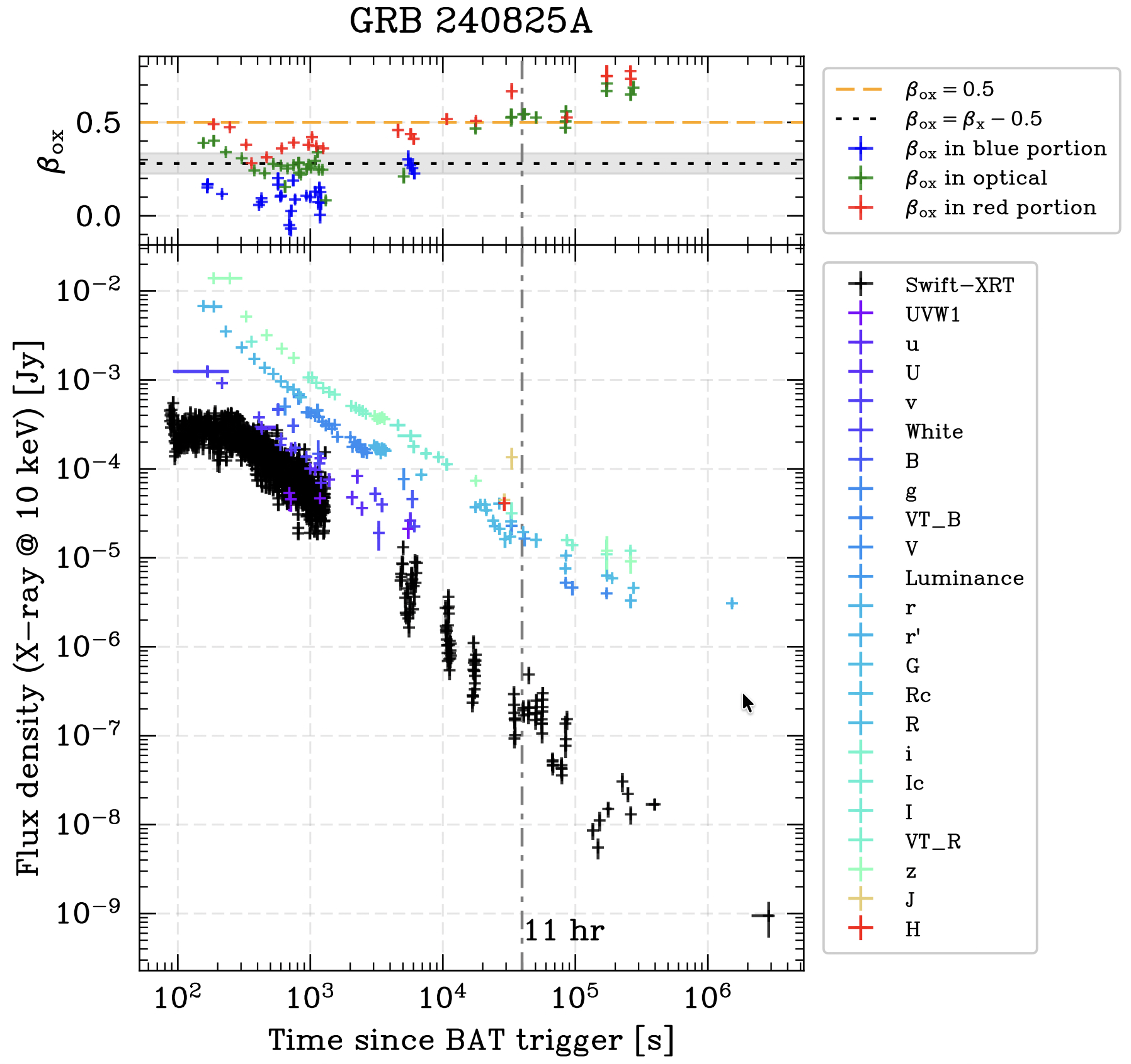 Figure 1, multiwavelength light curves of the afterglow of GRB 240825A. Image by LI.